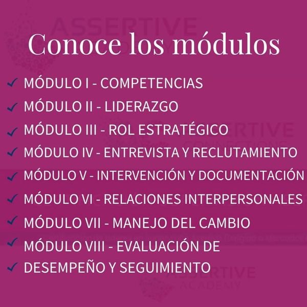 •Currículo compuesto de diez (10) módulos y (35) lecciones. Todo dirigido a cubrir los diversos roles de un Supervisor Asertivo.